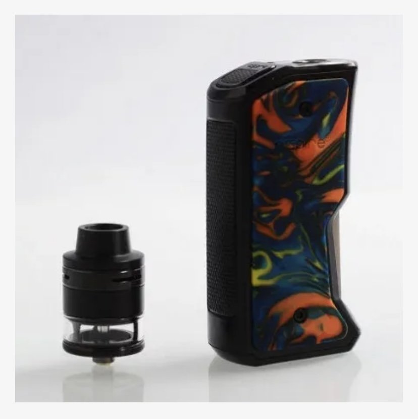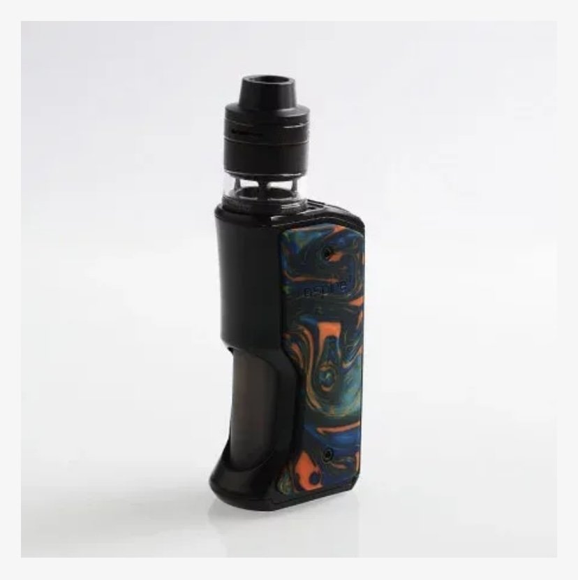 The Aspire Feedlink Revvo Kit is the latest kit from aspire and their first attempt to enter the sqounk market. The Aspire Feedlink Mod is a single 18650 battery non-adjutable sqounk mod with protections, and comes with a soft silicon 7ml bottle. The included tank is the new Revvo Boost tank, which is very similar to the Revvo tank that launched with the Aspire Sky’s star Revvo Kit, with the major difference being that you fill it by squonking instead of the top fill of the original. It’s available in 5 colors Silver, Black/Blue, Gunmetal/Chrome, Silver/Sunset Red, and Black/Nightsky.