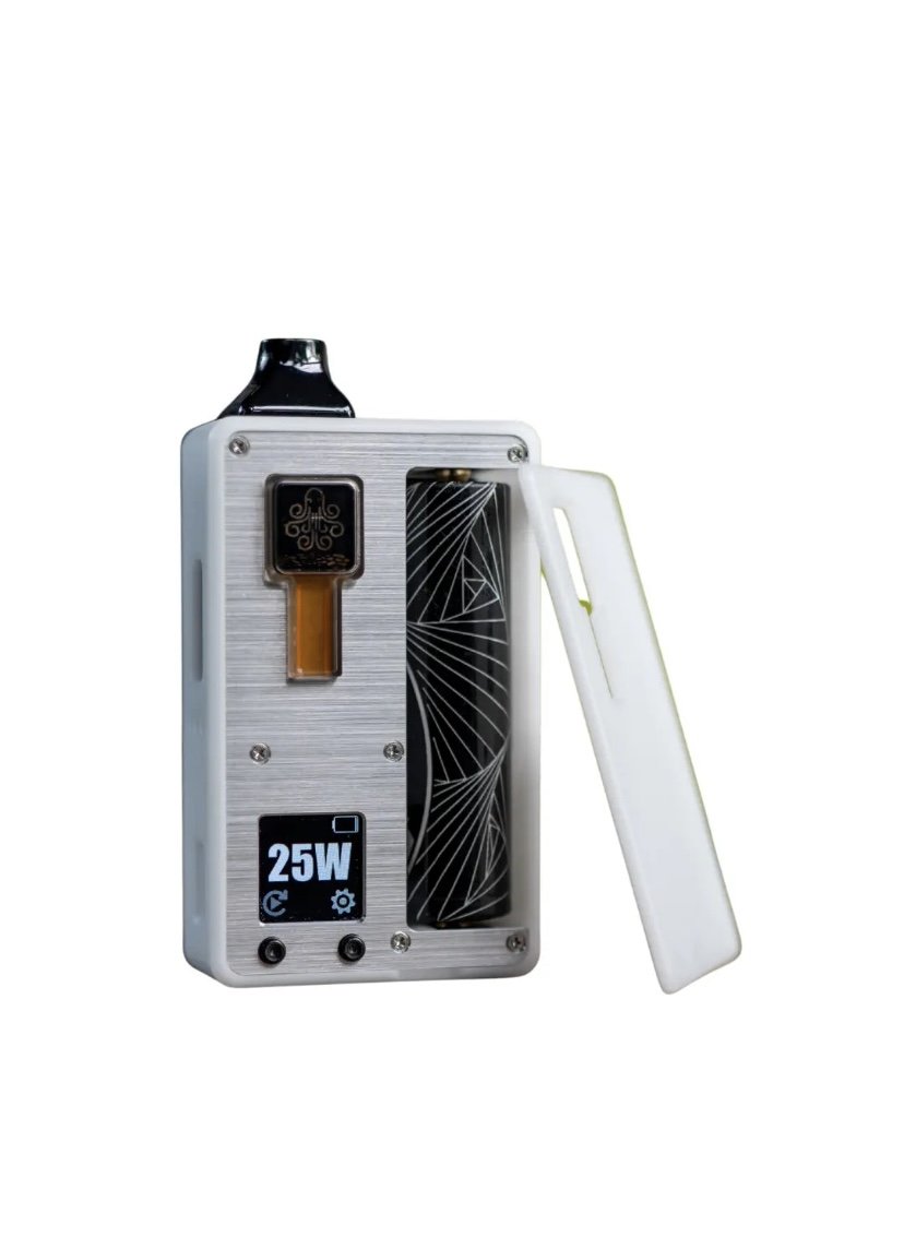 Introducing the Cthulhu DNA80c V2 AIO, an upgraded version of the original Cthulhu V2 AIO. Designed with a classic industrial aesthetic, this all-in-one device is precision-crafted from durable White Delrin and CNC machined for a fine finish. Lightweight, pocket-sized, and highly functional, it is fully Boro Tank compatible, featuring an adjustable positive pin for seamless compatibility with most Boro bridges, making it a versatile choice for vapers seeking a premium, customizable vaping experience.
