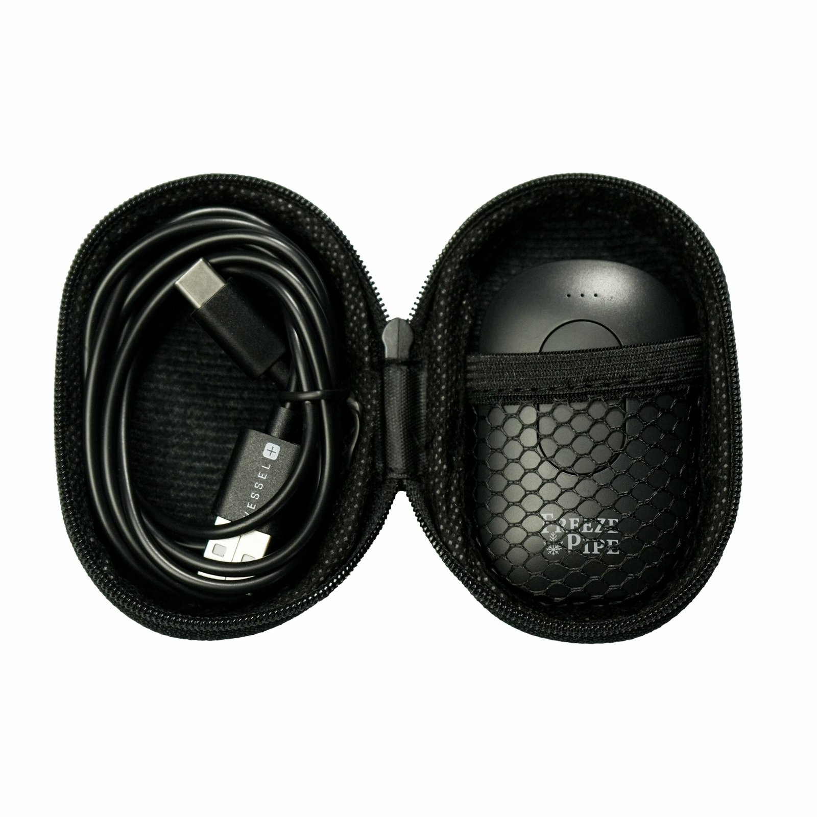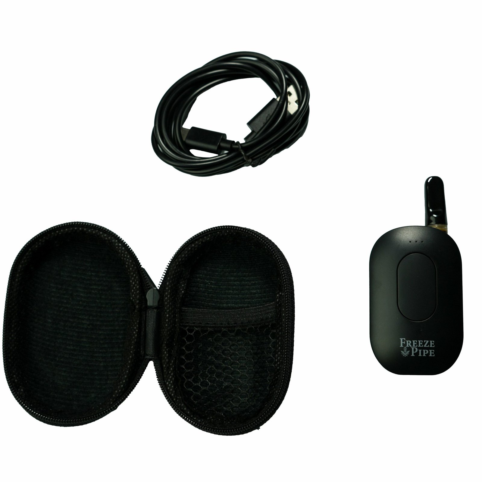 - Includes vape pen, carrying case, and USB-C charging cable