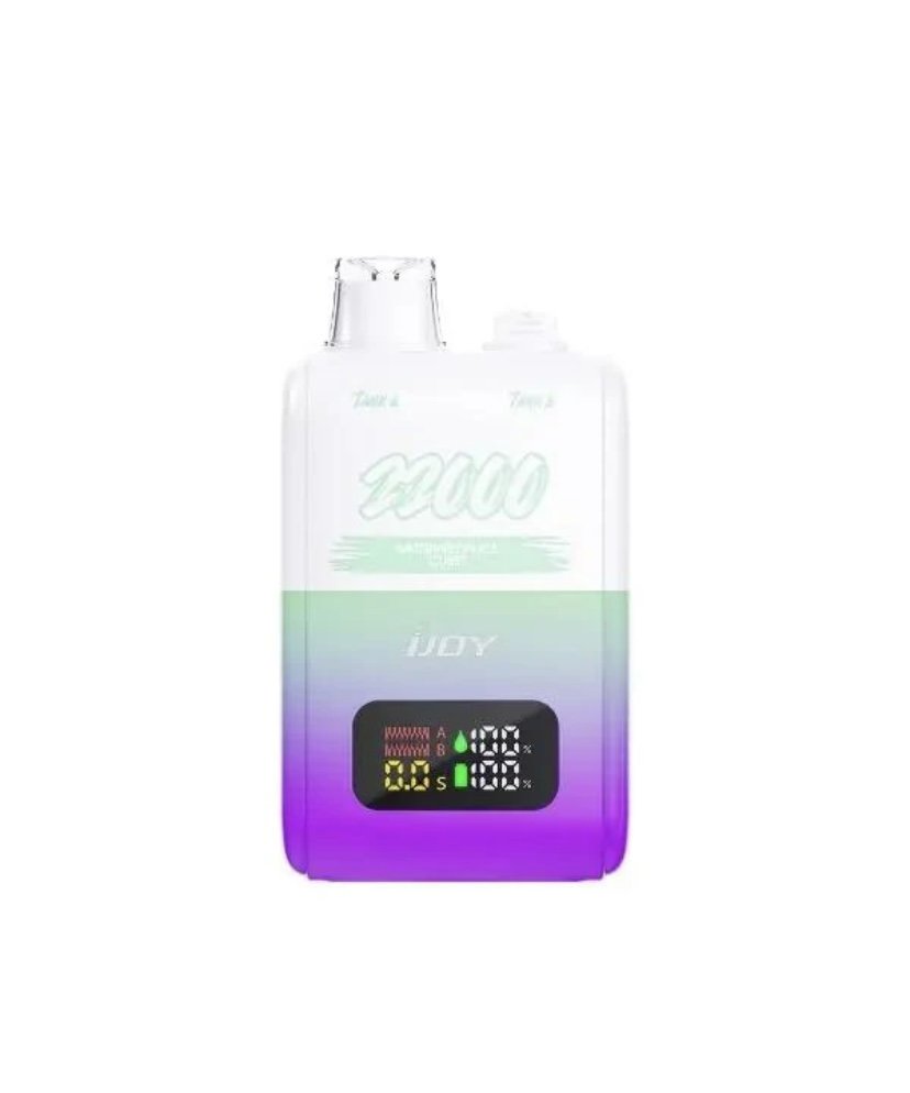 The iJoy SD22000 Rechargeable Vape comes with a dual tank system, offering an impressive 22,000 puffs per device. It has a smart screen designed for monitoring juice and battery levels, adjustable power output, and numerous other features.
